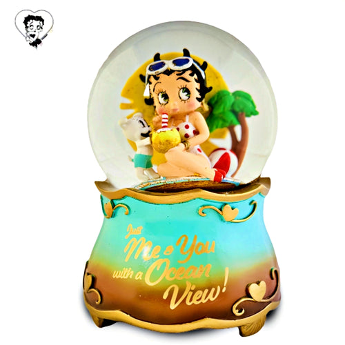 The Bradford Exchange Betty Boop™ Illuminated Glitter Globe Collection Issue #6: 'Just Me & You And An Ocean View' Hand-Painted Collectible Globe with Glittery Red Dress and Pudgy 6-Inches