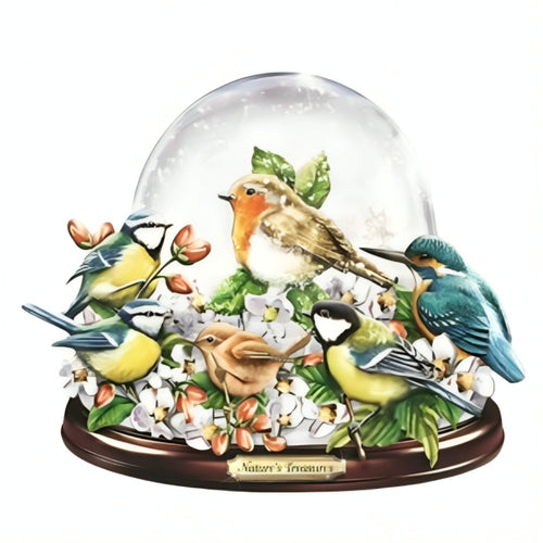 The Bradford Exchange Simple Pleasures Bird Globe Handcrafted Snow Globe with Robin, British Garden Birds, Floral Scenery, and Wood-Toned Base 9.2-inches