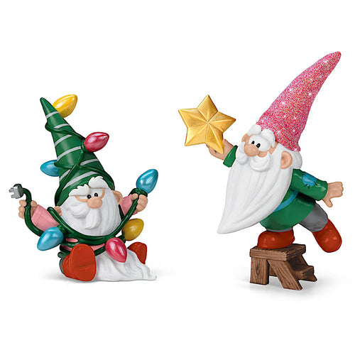 The Ashton-Drake Galleries The Christmas Tree Gnome Figure Collection Issue #3: Lumen and Twinkle Toes Handcrafted Resin Gnomes with Story Cards & Fabric Accents Christmas Decoration 4-Inches