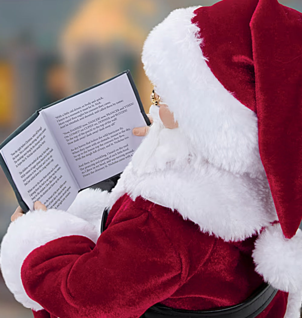 • The magic of Santa, the artistry of Thomas Kinkade, and a classic holiday recording by Mr. Kinkade come together in one holiday masterpiece with The Night Before Christmas Storybook Santa Doll, available exclusively from Ashton-Drake