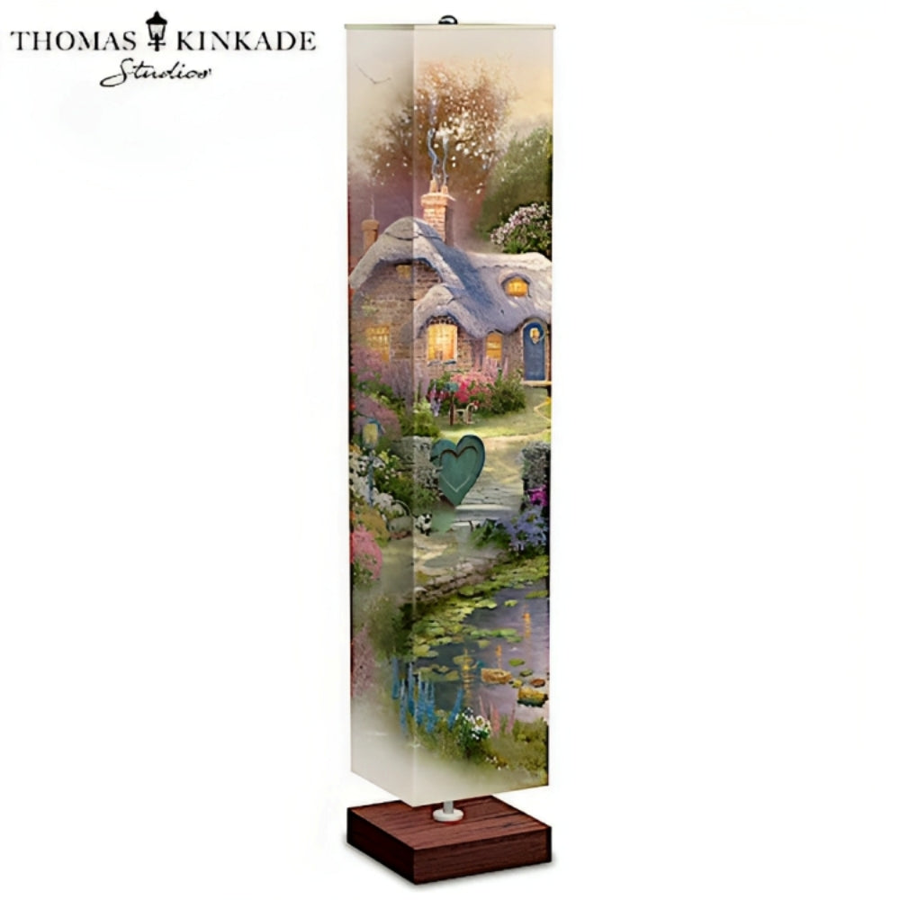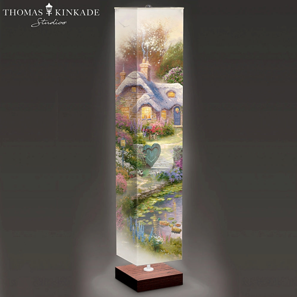 World-renowned artist Thomas Kinkade is known for his radiant portrayals of nature's serenity. Now, you can display this beloved artist's tranquil vision of a cozy cottage surrounded by beautiful blossoming flowers with the Thomas Kinkade Country Cottage Floor Lamp, an original design available only from The Bradford Exchange. All four sides of this breathtaking floor lamp are covered in Thomas Kinkade artwork, expertly reproduced in vivid detail to create a statement piece in any room.