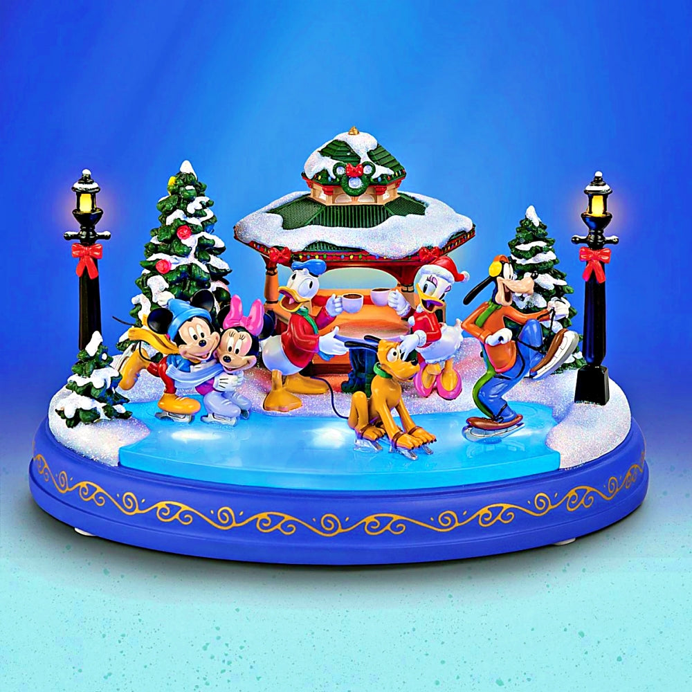 • A festive holiday skating party featuring Disney's Mickey Mouse and Friends is captured in this Disney Mickey & Friends The Holidays Are Magic Sculpture, available from The Bradford Exchange