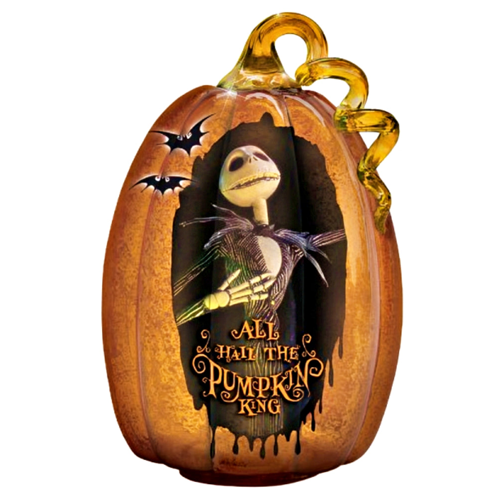 • Arriving in various colors and sizes, each The Nightmare Before Christmas hand-blown glass pumpkin in this collection showcases authentic artwork of a beloved character, including Disney's Jack Skellington, Sally, Oogie Boogie and more