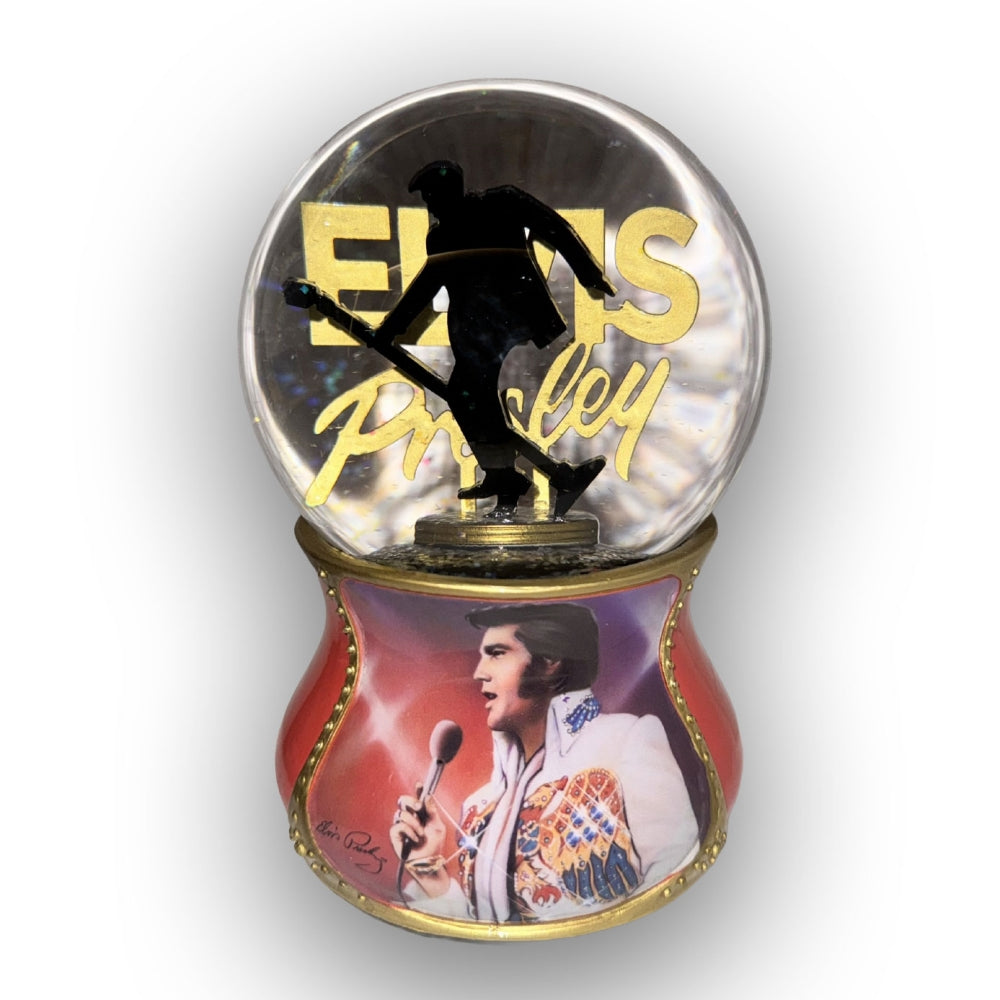 • Each Elvis Presley collectible in this collection features a crystal-clear glass globe with a famous Elvis silhouette inside