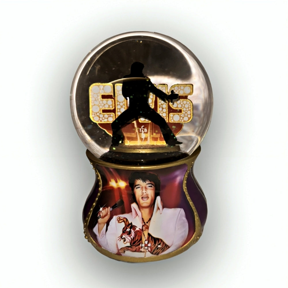 • Each Elvis Presley collectible in this collection features a crystal-clear glass globe with a famous Elvis silhouette inside