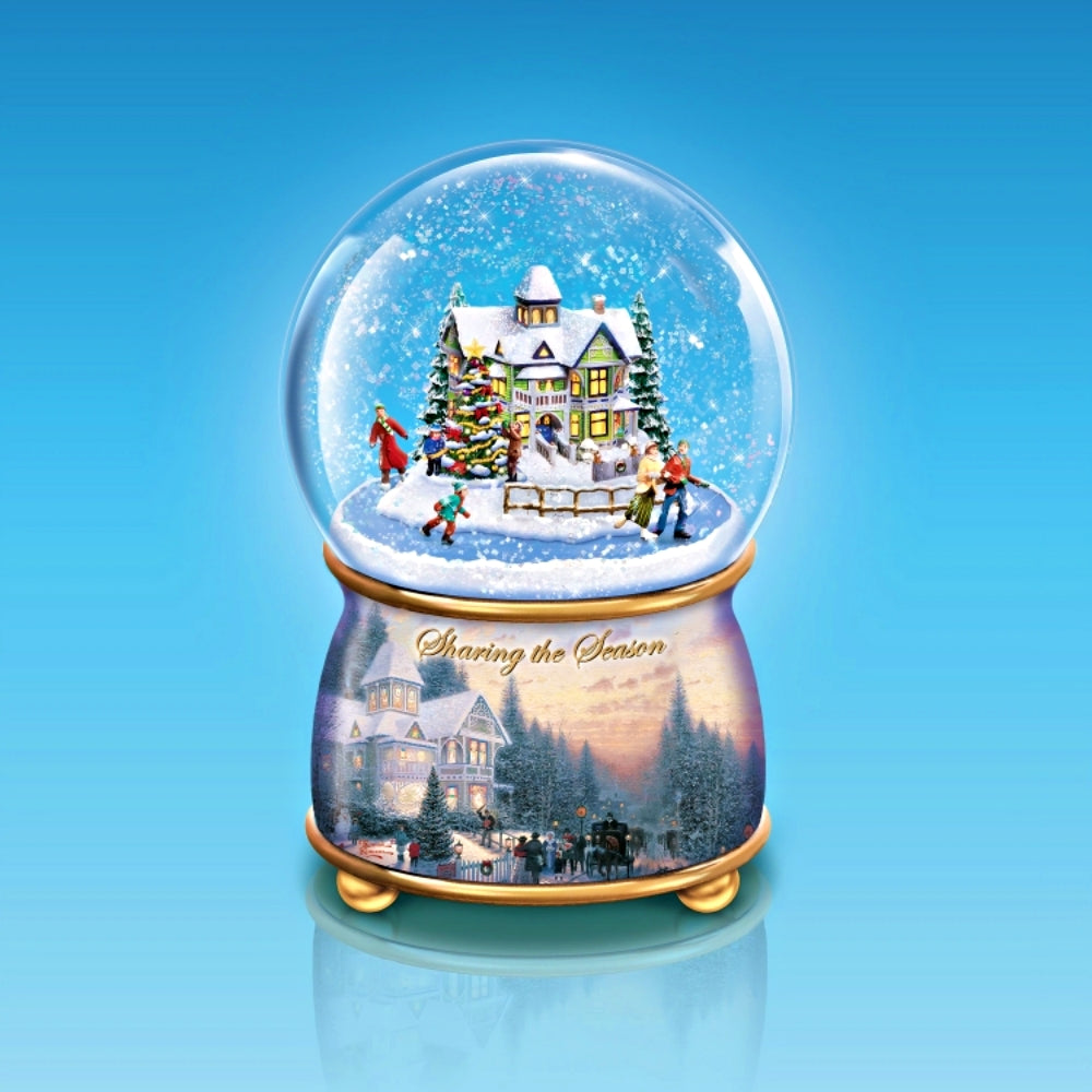 • All-new from Thomas Kinkade Studios and available for the first time ever! At the simple turn of a key, each issue in this holiday snowglobe collection showcases a sculpted scene that rotates on the inside of the glass globe