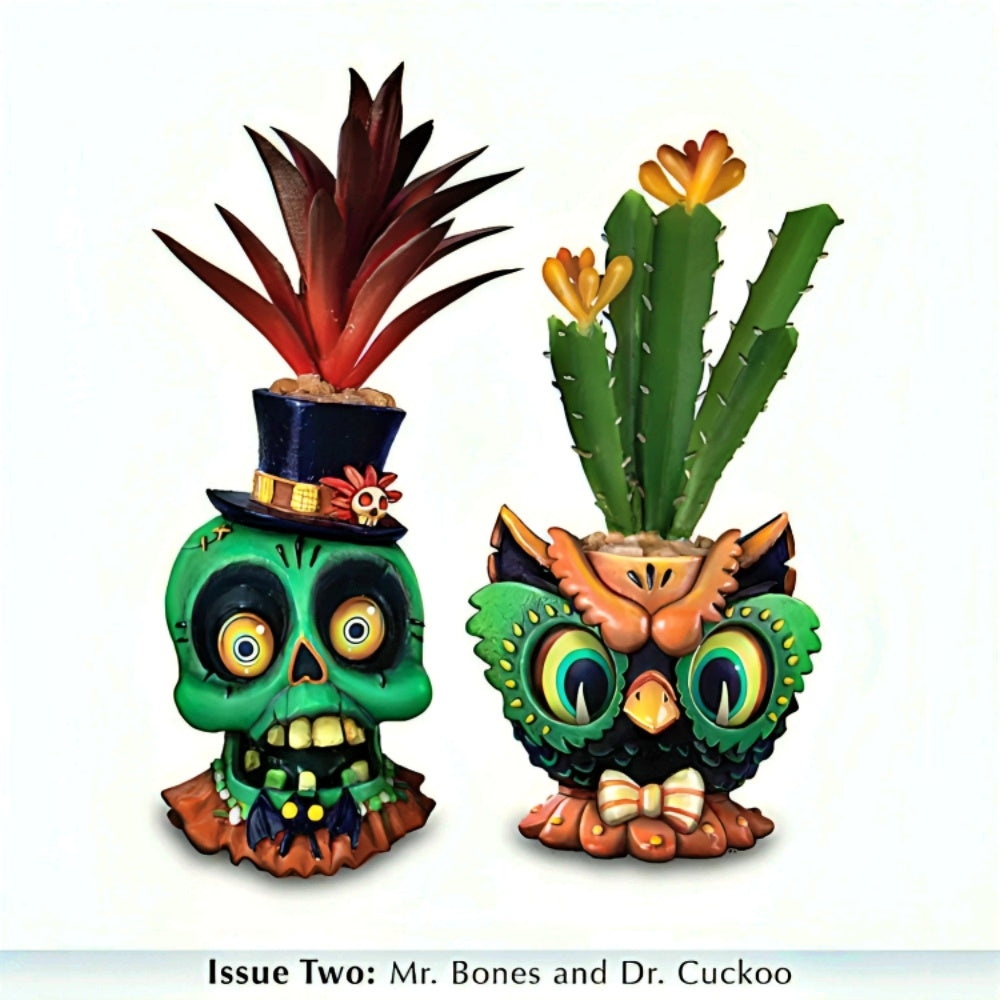 We all remember the plastic Halloween masks with eyeholes you could barely see out of, and the treat buckets shaped like jack-o'-lanterns. Now this collection of Halloween artificial succulent planters captures a bit of that fun, classic style from back in the day. Introducing the Spooky Sprouts Sculpture Collection, available exclusively from The Bradford Exchange. Arriving in sets of two.