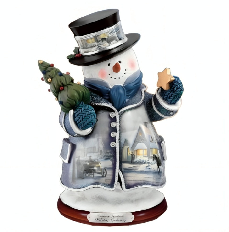 • Official Thomas Kinkade Collectible: Features the beloved artwork of Thomas Kinkade beautifully reproduced on the snowman's overcoat and top hat for a timeless holiday look
