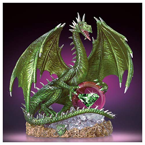 Unleash the power of ancient magic! Transform your home into a dragon's den with this fabulous collectible dragon figurine, available exclusively from The Hamilton Collection! This superb work of sculptural dragon art is inspired by mythic tales of dragons. Look, he guards a globe of clear crystalline, encasing a simulated emerald - surely, the supernatural key to lightning's fury! This magnificent collectible fantasy art figurine is expertly handcrafted and hand-painted in brilliant emerald hues, highlighting his arched, "leathery" wings and serpentine scaled body, while beneath him "stone" and shimmering "crystals" give way to claw and talon!