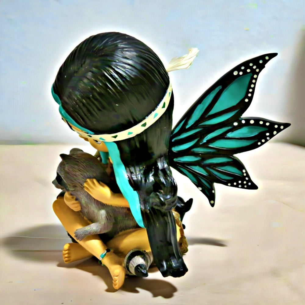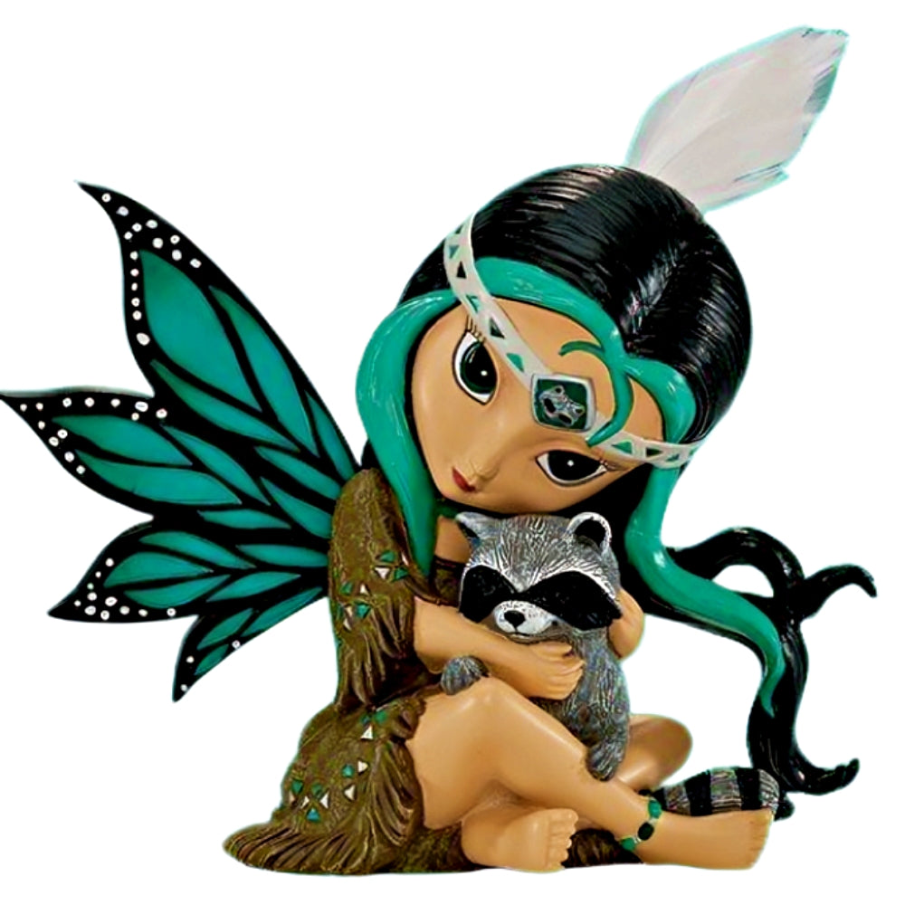 Strength, courage, and wisdom come together in this enchanting Hamilton Collection exclusive Raccoon and Fairy figurine, inspired by the fantasy artwork of renowned artist Jasmine Becket-Griffith. Cradling her adorable raccoon companion, this mystical maiden calls upon the raccoon spirit for guidance and inner strength. From her wide-eyed, expressive gaze to her butterfly-like wings and fringed, beaded costume, every detail captures the magical essence and signature style that collectors love.
